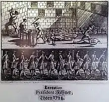 Un procès est organisé, et le douze luthériens sont condamnés à mort, ainsi que Rösner pour avoir manqué à son devoir de maintenir l'ordre. Jerzy Dominik Lubomirski est chargé d'exécuter le verdict.