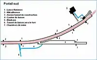 À noter que le portail nord du tunnel comporte deux tubes. Le second fut construit en 1960 et, quatre-vingt mètres après, il rejoint le tube principal.