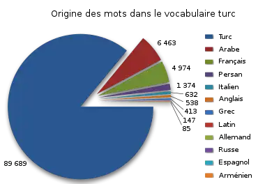 - (tr) « Türkçe Sözlük (2005)’teki Sözlerin Kökenlerine Ait Sayısal Döküm (Numerical list on the origin of words in Türkçe Sözlük (2005)) », Turkish Language Association, (consulté le )