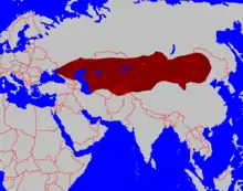 Les Turcs étaient à l'origine un peuple sédentaire pratiquant l'agriculture en Asie de l'Est, autour du fleuve Liao[71],[72],[73],[74]. Ils migrèrent vers la Mongolie au cours du IIIe millénaire av. J.-C., à cause du refroidissement climatique et de la désertification de leur région[71]. Les contraintes les poussèrent à adopter un mode de vie nomade et pastoral[71]. Ils étaient alors un peuple de religion tengriste, une forme de chamanisme.