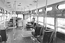 Les véhicules retiennent un aménagement intérieur avec un large couloir similaire à celui des motrices américaines avec cependant moins de sièges dans la partie avant avec deux rangées en 1+1 sièges et 1+2 sièges après la porte arrière[alpha 2]. Elles s'en différencient également par la présence d'un poste de perception pour le receveur situé à l'avant à droite devant la deuxième fenêtre, ces motrices étant exploitées par deux agents[alpha 3].