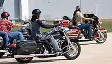 - motocross : un type de moto héritière de la tradition des scramblers anglo-saxons[12] utilisé sur des pistes tout-terrain courtes et fermées avec une variété d'obstacles. Les motos ont un petit réservoir de carburant pour plus de légèreté et de compacité. La suspension à long débattement permet aux motards de faire des sauts à grande vitesse. Les moteurs de motocross sont des monocylindres à deux ou quatre temps, dont la taille varie de 50 cm3 à environ 500 cm3. Au niveau professionnel, les motos sont réparties en deux niveaux en fonction de leurs déplacements : MX et MX Lite. La classe MX Lite contient des moteurs à deux temps de 125 cm3 et des moteurs à quatre temps de 250 cm3, tandis que la classe MX oppose des moteurs à deux temps de 250 cm3 à des moteurs à quatre temps de 450 cm3. Les différences de puissance, de cylindrée, de couple et de poids sont toutes des variables qui équilibrent la concurrence entre les moteurs à deux et à quatre temps[13]. Les tenues de sidecar de motocross ont des moteurs plus gros, généralement à quatre temps et souvent à deux cylindres. Les motos de motocross sont également utilisés en motocross freestyle ;