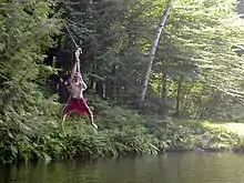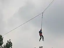 Le parcours sur une tyrolienne varie selon le but et l'équipement de la traversée.