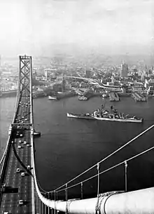 Commandé sous le nom d'USS Pittsburgh le , sa quille est posée le au chantier naval Fore River de la Bethlehem Steel de Quincy, dans le Massachusetts. À la demande du Président Franklin Delano Roosevelt[1], il est renommé USS Canberra en l'honneur de l'ancien navire du même nom coulé lors de la bataille de l'île de Savo en . Il est l'un des deux navires de guerre de l'US Navy à porter le nom d'une capitale étrangère (l'autre étant un Littoral combat ship)[2]. Parrainé par Alice, Lady Dixon, épouse de l'ambassadeur d'Australie aux États-Unis, Owen Dixon (en), il est lancé le et mis en service le sous le commandement du captain Alex Rieman Early[3].