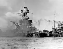 Alors que la première vague d'avions frappait à 7h50, l'USS Nevada, amarré près de l'USS Arizona, avait partiellement pris de la vapeur. À 8h03, il a été touché par une torpille et a commencé à gîter. Les contre-inondations ont empêché l'USS Nevada de chavirer alors que ses batteries anti-aériennes tiraient sur les avions attaquants, abattant l'avion qui avait largué la torpille. Alors que l'incendie sur l'USS Arizona détruit commençait à menacer l'USS Nevada, juste au moment où la deuxième vague d'avions frappait, l'USS Nevada endommagé a pris la route à 8h45, ses officiers espérant échapper au piège et courir vers le large par l'entrée étroite du port. Les Japonais ont concentré leur attaque sur le Nevada, qui a continué à avancer, des bombes s'écrasant autour de lui et sur son pont avant et sa superstructure. À 9h07, un deuxième bombardement du navire frappe le gaillard d'avant. À 9h10, l'USS Nevada coulait et s'immobilisa à Hospital Point pour éviter de couler dans le chenal.