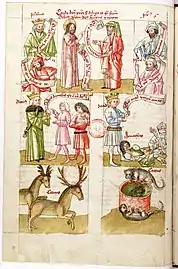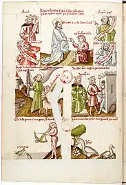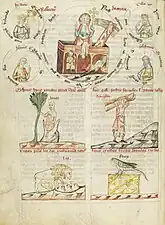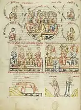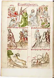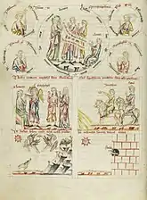- Les Rota in medio rotae sont des manuscrits qui suivent chronologiquement les Pictor in carmine et précèdent les Biblia pauperum ; voir par exemple (de) Frank Büttner et Andrea Gottdang, Einführung in die Ikonographie : Wege zur Deutung von Bildinhalten, Munich, C. H. Beck, , 304 p. (ISBN 978-3-406-53579-6, lire en ligne), p. 62.