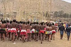 En Eswatini, des dizaines de milliers[1],[3] de filles et de femmes, Swazies, célibataires et sans enfant, voyagent vers les différentes chefferies à Ludzidzini (en), le village de la famille royale, afin de participer à l'événement qui dure huit jours. L'Umhlanga a été créé dans les années 1940, en Eswatini, sous le règne de Sobhuza II, afin d'honorer la reine mère[1]. Mais cette cérémonie est devenue le rituel où les femmes vierges montrent leur loyauté au roi[2] et pour celui-ci, l'occasion de se choisir une nouvelle femme parmi les jeunes filles[1]. La cérémonie est adaptée du rituel Umchwasho.