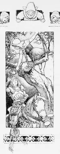- Ce motif rappelle que dans le conte de Grimm, l'héroïne brise un rameau de l'arbre magique pour l'offrir au chevalier.