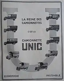 En 1933, Unic est le premier constructeur français à proposer une gamme complète de véhicules industriels de 3 à 18 tonnes.