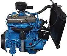 1965 : Le 411b a été construit jusqu'en février 1965, et à partir de février 1965[A 3] le type 411c a été produit en série, la principale différence par rapport au 411b étant l'augmentation de 2 ch (1 471 W) de la puissance du moteur. Daimler-Benz a continué à installer le moteur OM 636.914; Cependant, la vitesse nominale a été augmentée de 2 550 tr/min à 2 750 tr/min. De plus, la culasse et la pompe d'injection ont été changés[33]. Cela a abouti à une amélioration des performances à 34 ch (25 kW). Afin de maintenir les mêmes vitesses de conduite au régime nominal du moteur, le rapport de transmission des essieux a été modifié de 25:7 à 35:9[34]. Le support de capote arrière, le compteur de vitesse dans la cabine, la poulie à courroie trapézoïdale du compresseur et les feux arrière ont également été modifiés. Avec l'introduction du type 411c en 1965, il y avait trois modèles, les 411.118, 411.119 et 411.120, déclinés en neuf versions[33].