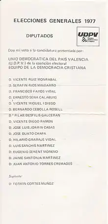 | Union démocratique du Pays valencien Equipo Demócrata Cristiano del Estado Español (ca) | |