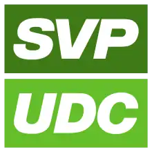 L'Union démocratique du centre (en allemand : Schweizerische Volkspartei, SVP[Note 1], en italien : Unione Democratica di Centro, UDC et en romanche : Partida Populara Svizra, PPS[Note 1]) est un parti politique suisse conservateur, nationaliste et populiste, classé de la droite[18],[19],[20],[21],[22] à l'extrême droite[23],[24],[25],[26].