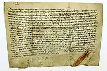 - la conversion du grand-duc Władysław II (en français, Ladislas II Jagellon ; en lituanien, Jogaila Algirdaitis) et des nobles lituaniens à la religion catholique ;
