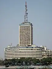 La création d'une chaîne de télévision nationale semble avoir été envisagée dès les premières années de la république égyptienne (proclamée en 1953). Les événements politiques (Crise du canal de Suez) vont néanmoins faire passer ce projet au second plan durant plusieurs années. La construction de l'immense tour de la télévision (190 mètres)[2] sur l'île de Gezira débute en 1956 et s'achève en 1960.