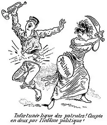 Cette division de la LDP est évidente au sein de son comité directeur, où une minorité boulangiste de dix membres (sur trente, dont dix absents) tente de s'imposer en conférant la présidence d'honneur à Déroulède lors de la réunion du . Six membres du comité directeur expriment aussitôt leur refus de cette violation des statuts en démissionnant (David Gerschel (d), Édouard Siebecker et Alfred Woirhaye) ou en appelant à la tenue d'une assemblée générale (Deloncle, Péan et Wellhoff)[2]. Plusieurs de ces contestataires sont originaires d'Alsace-Lorraine, membres de l'Association d'Alsace-Lorraine et de la loge Alsace-Lorraine, et liés aux milieux républicains modérés.