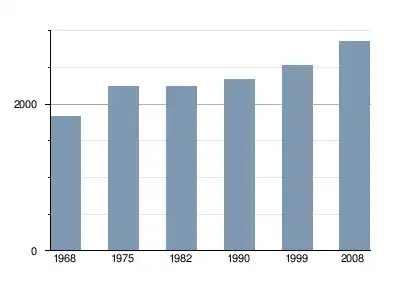 La population de l'unité urbaine est en augmentation constante depuis 1968[A 5].