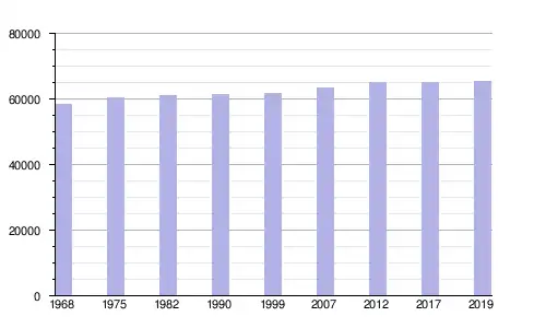 L'évolution démographique ci-dessous concerne l'unité urbaine selon le périmètre au .