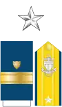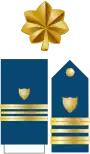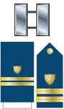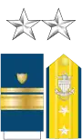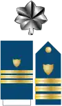 | Admiral (ADM) Amiral | Vice admiral (VADM) Vice-amiral d'escadre | Rear admiral (upper half) (RADM) Vice-amiral | Rear admiral (lower half) (RDML) Contre-amiral | Captain (CPT) Capitaine de vaisseau | Commander (CDR) Capitaine de frégate | Lieutenant Commander (LCDR) Capitaine de corvette | Lieutenant (LT) Lieutenant de vaisseau | Lieutenant (junior grade) (LTJG) Enseigne de vaisseau de première classe | Ensign (ENS) Enseigne de vaisseau de deuxième classe |