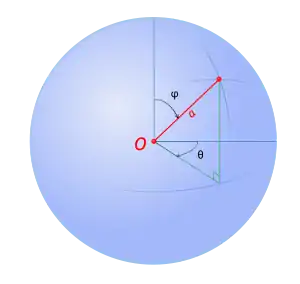 On peut donc représenter notre espace à trois dimensions, en coordonnées polaires, à l'aide de trois paramètres angulaires , et sous la forme :