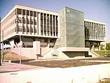 Logotype de l'université dans les années 1980 : le L de Lyon suivi du chiffre 1.