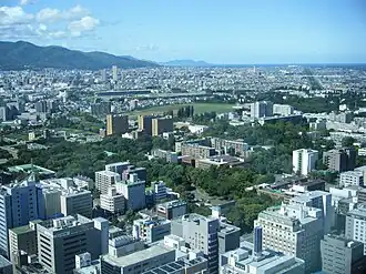 Il s’étend sur un peu plus de 177 ha et dispose de plus de 740 000 m2 de bâti. Il est situé à proximité immédiate du nord de la gare de Sapporo dans l’arrondissement nord de la ville[42]. Les rangées de peupliers qui encadrent l’allée centrale, une espèce rare au Japon, ont été introduites afin de servir de coupe-vent[9] et y sont plantées à partir de 1912[11].