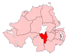 Carte représentant en rouge la circonscription électorale d'Upper Bann (Irlande du Nord).