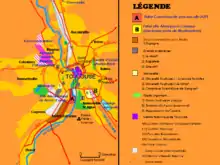La ville de Toulouse est organisée en différentes zones à peu près concentriques :