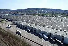 L'usine est traversée du nord au sud par la route européenne 23 (rue de la Rocade), qui sépare le magasin nord et le magasin sud. L'usine est cernée au nord par l'avenue des rives du lac et au sud par la rue de Gray à Lure. Ces dernières voies routières sont largement fréquentées grâce à la présence de l'usine : en effet près de 1 000 camions circulent quotidiennement via l'établissement industriel[8].