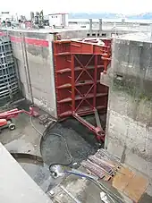 Durant les deux premières années, les travaux visent à créer une zone sèche où l’usine pourra être construite. Pour cela, deux batardeaux provisoires sont créés de part et d’autre du site actuel de l’usine. Ils sont composés de gabions de palplanches ancrés sur des caissons circulaires en béton armé de 19 m de diamètre conçus par l'ingénieur Albert Caquot[9]. La construction de l'usine proprement dite débute le , une fois la Rance entièrement coupée par les batardeaux. Les travaux durent trois ans et s’achèvent en 1966. Charles de Gaulle, président de la République française, inaugure l’usine le [10]. L’inauguration de la route franchissant l’usine a lieu le et le raccordement au réseau électrique (EDF), le [11]. Au total, l’usine a coûté à l’époque 620 millions de francs (ce qui correspond à environ 817 millions€ de 2016)[12].