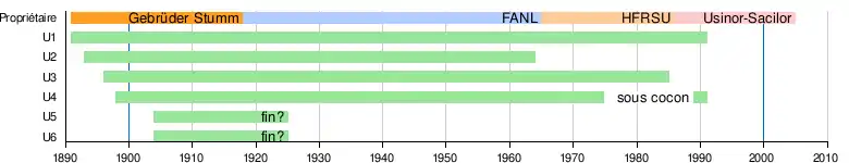 Édifiée en 1890 par la société Gebrüder Stumm (de), l'usine est spécialisée dans la production de fonte en gueuses, élaborées à partir du minerai de fer local, la minette. Constamment modernisée, elle concentre toute la production de fonte de moulage française en 1965, bénéficiant des restructurations de l'industrie sidérurgique à cause de sa taille et de son emplacement idéal au cœur du bassin sidérurgique lorrain[note 1].