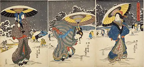 Utagawa Kunisada (歌川 国貞)[1] (1786-), connu également sous le nom Utagawa Toyokuni III (三代歌川豊国)[1] est l'un des peintres d'ukiyo-e les plus populaires du XIXe siècle et aussi l'un des plus prolifiques et ayant le mieux réussi sur le plan financier, devant Kuniyoshi et Hiroshige. Il a notamment fait une illustration du Genji monogatari et des représentations d'acteurs de kabuki contemporains. Il est un maître incontesté de l'estampe sur bois.