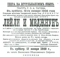 - http://portal.unesco.org/en/ev.php-URL_ID%3D42354&URL_DO%3DDO_TOPIC&URL_SECTION%3D201.html 100th anniversary of the first opera in the East: “Leyli and Majnun” (1908)