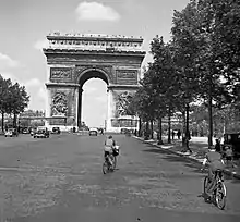 En 1897 est créée avenue de la Grande-Armée la première piste cyclable parisienne (alors appelée trottoir cyclable), de quatre mètres de large[25],[26]. Ces pistes, souvent financées par des souscriptions de clubs cyclotouristes, étaient destinées à offrir une surface de roulement de meilleure qualité que les pavés des chaussées. En 1912, la politique du Touring club de France visant à ouvrir des pistes cyclables en région parisienne a abouti à la constitution d'un premier réseau de 250 km[27].