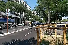 - Ce double-sens cyclable, créé dans une rue dont la vitesse est alors limitée à 50 km/h, s'inscrit dans un parcours cyclable qui permet de relier le boulevard de Strasbourg à la place de la Bataille-de-Stalingrad sans détour[75].