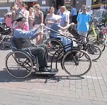 Les handcycles (ou handtrike), utilisés en cyclisme handisport, recourent à un pédalage manuel.