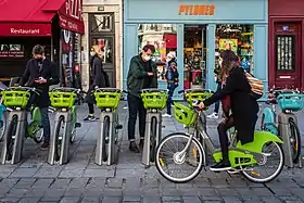 À partir de la deuxième moitié de la décennie 2010 se développent des offres sans station, dites en « flotte libre » (en anglais : dockless ou free floating)[12],[13],[14],[15]. Ce système, qui existait déjà dans quelques villes allemandes depuis 2000, repose sur des vélos qu'on laisse dans l'espace public après utilisation. Il se développe en Chine à partir de 2014 grâce à l'apparition des applications sur téléphone mobile, puis se répand rapidement dans le reste du monde[8].
