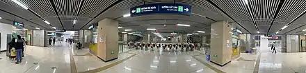 La station est accessible, au niveau du sol, par des escaliers et des escaliers mécaniques et un ascenseur pour les personnes en situation de handicap. C'est au premier niveau que l'on trouve les bornes pour l'achat de titres de transports et les Portillon d'accès pour la validation des billets. Au deuxième niveau on accède deux quais latéraux par les mêmes moyens que pour l'accès au premier niveau[3].