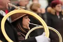 • Le cor de chasse est accordé en mi bémol et n'est pas utilisé à la chasse mais en musique militaire. La différence visible est la coulisse d’accord (petit tube intérieur modifiant la tonalité), sur la branche d’embouchure. Contrairement à la trompe, son pavillon n'est jamais peint en noir intérieurement. La mesure de la musique semblerait être principalement à 2 ou 4 temps binaires (troupes à pied) mais redevient ternaire, dans les fanfares de cavalerie où il se présente pavillon en avant au contraire du cor et de la trompe. On l'appelle alors trompette-cor.