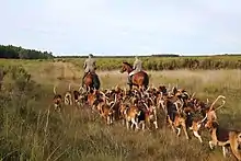 • « vénerie à cheval » pour un équipage chassant les grands mammifères comme le cerf, le chevreuil et le sanglier ;