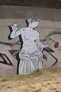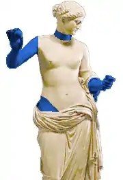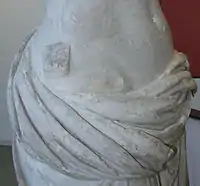 Un type iconographique — On dit parfois d'une Vénus qu'elle est « de type d'Arles », notamment lorsqu'elle est de style classique, à demie dénudée et qu'elle tient des attributs dans ses mains. Les plus fameux exemples sont, d'une part une antique en marbre encore à Versailles dite la « Vénus Cesi »[230] et, d'autre part, l'Aphrodite acéphale du Capitole (supra), sans compter d'autres statues clairement rattachées à ce type[71],[231]. Dans son ouvrage Johan Flemberg présente des statues très proches du type d'Arles, dans l'attitude et le mouvement[232]. Dans sa thèse sur la Syrie romaine, Nada Ghraoui dénombre vingt-huit cas relevant de ce type dans son champ d'investigation[233]. (Voir aussi les créations artistiques autour de la Vénus infra.)