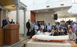 Le ,deux policiers israéliens d'origine druze sont abattus près de la porte des Lions, à l’entrée est de la vieille ville de Jérusalem par trois Arabes israéliens qui sont eux-mêmes tués par la police sur l'esplanade des Mosquées, d'où ils étaient partis[216] et où ils avaient fui[217]. Cet attentat est condamné par le roi Abdallah II de Jordanie alors que le Parlement jordanien rend hommage le aux terroristes[218]. Par crainte de nouvelles violences, les autorités israéliennes ont alors évacué l'esplanade et fermé son accès[217]. Mahmoud Abbas appelle Benyamin Netanyahou – ce qu’il n’avait plus fait depuis des années – pour lui exprimer son « rejet de tout acte de violence, d’où qu’il vienne, particulièrement dans les lieux de culte » [219]. Le site est rouvert le dimanche mais l'installation par la police israélienne de détecteurs de métaux pour protéger son accès suscite la colère des autorités du Waqf et des fidèles qui refusent de passer par ces détecteurs[220]. La situation s'aggrave alors : des émeutes anti-israéliennes font cinq morts côté palestinien et trois Israéliens sont assassinés pendant leur dîner de Chabbat dans la colonie de Halamish[221]. Finalement, après un entretien entre Benyamin Netanyahou et le roi Abdallah II de Jordanie — La Jordanie contrôle le Waqf de Jérusalem, chargé de l'administration des lieux saints musulmans — le gouvernement israélien retire le les détecteurs de métaux et annonce son intention d'installer à leur place des moyens de sécurité fondés sur une « technologie avancée »[222]. Selon un sondage, 77 % des Juifs israélien estiment que la décision du Premier ministre constitue une « capitulation » [223] alors que les Palestiniens y voient une victoire[224].