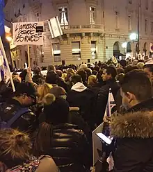 La vague de violence israélo-palestinienne de l'automne 2015 à , parfois appelée Intifada des couteaux[9] ou Intifada des loups solitaires ou encore, pour le Hamas, Intifada Al-Quds[10], désigne les graves incidents — manifestations avec jets de pierre ou de petits engins explosifs[11], répression de celles-ci au gaz lacrymogène et à la balle en caoutchouc, assassinats ou tentatives d'assassinats d'Israéliens à l'arme à feu ou à l'arme blanche, neutralisation des agresseurs palestiniens, tirs de roquettes depuis la bande de Gaza et réponse aérienne israélienne, attaques palestiniennes à la voiture-bélier et attentat-suicide — qui se sont déroulés en Israël et dans les territoires palestiniens occupés à partir de , quand des tensions reprennent sur l'esplanade des Mosquées à l'approche des fêtes du Nouvel an juif. Invoquant la volonté du gouvernement israélien de modifier le statu quo sur le mont du Temple (intention plusieurs fois démentie par le chef du gouvernement israélien Benyamin Netanyahou[12],[13] qui a aussi dû « recadrer » sa ministre adjointe des Affaires étrangères[14] pour des propos contraires), les manifestations palestiniennes s'intensifient. Le 1er octobre, un couple israélien est assassiné dans sa voiture en présence de ses quatre enfants en Cisjordanie. La vague de violence redouble d'intensité avec la traque des coupables. Des Israéliens sont assassinés à l'arme blanche, ce qui fait craindre une intifada des couteaux, et des roquettes sont tirées à partir de la bande de Gaza entraînant des ripostes aériennes. Des manifestations palestiniennes suscitent de violents heurts avec les forces de l'ordre israéliennes. Dans un même temps, plusieurs manifestations appelant à la paix ont lieu en Israël.