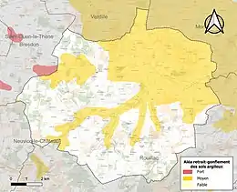 Le retrait-gonflement des sols argileux est susceptible d'engendrer des dommages importants aux bâtiments en cas d’alternance de périodes de sécheresse et de pluie. 45,3 % de la superficie communale est en aléa moyen ou fort (67,4 % au niveau départemental et 48,5 % au niveau national). Sur les 496 bâtiments dénombrés sur la commune en 2019, 286 sont en aléa moyen ou fort, soit 58 %, à comparer aux 81 % au niveau départemental et 54 % au niveau national. Une cartographie de l'exposition du territoire national au retrait gonflement des sols argileux est disponible sur le site du BRGM[9],[10].