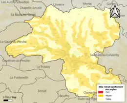Le retrait-gonflement des sols argileux est susceptible d'engendrer des dommages importants aux bâtiments en cas d’alternance de périodes de sécheresse et de pluie. 51,9 % de la superficie communale est en aléa moyen ou fort (52,8 % au niveau départemental et 48,5 % au niveau national). Sur les 2 418 bâtiments dénombrés sur la commune en 2019, 1651 sont en aléa moyen ou fort, soit 68 %, à comparer aux 70 % au niveau départemental et 54 % au niveau national. Une cartographie de l'exposition du territoire national au retrait gonflement des sols argileux est disponible sur le site du BRGM[18],[Carte 1].