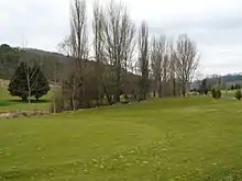 Au milieu du terrain de golf de Sagelat, un mince rideau de peupliers marque la présence de la Vallée.