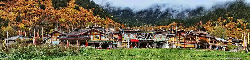 Jiuzhaigou (littéralement « Vallée des neuf villages ») prend son nom des neuf villages tibétains situés en son long.
