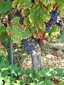 Les rouges sont principalement faits à partir du grenache N, complété par de la syrah N, du mourvèdre N et accessoirement du brun argenté N (localement dénommé camarèse ou vaccarèse), du carignan N, du cinsaut N, de la counoise N, du muscardin N, du piquepoul noir N et du terret noir N[6].