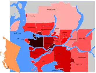 Localisation de Vancouver dans son aire métropolitaine | ||||