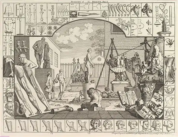 En 1753, dans son ouvrage, L'analyse de la beauté, William Hogarth consacre une planche d'illustration aux représentations de l'homme, conforme à l'intérêt essentiel qu'il porte aux lignes serpentines.