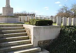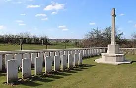 Le cimetière, entouré d'un mur de pierres sur 3 côtés, contient maintenant 62 sépultures de soldats britanniques.
